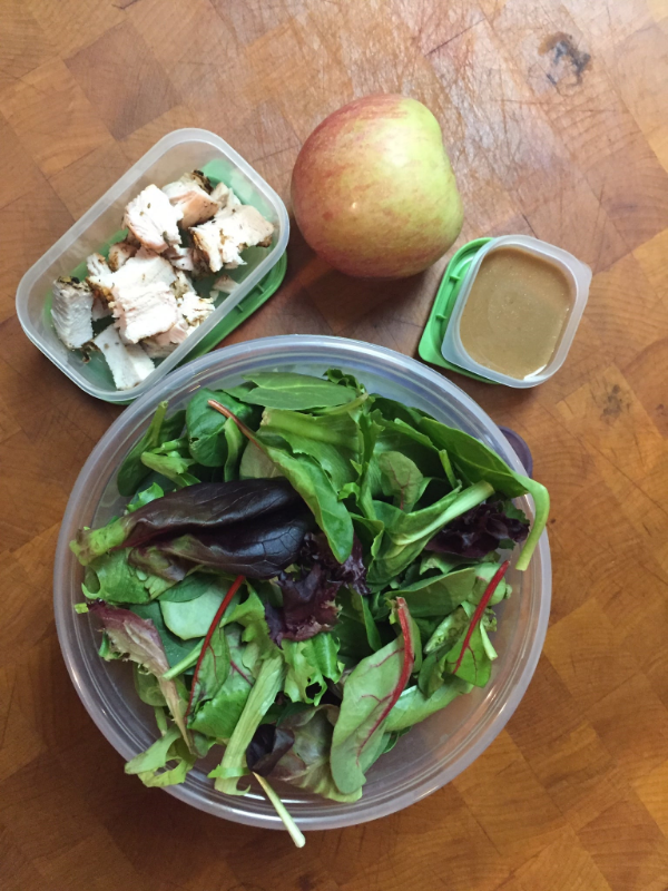 Lunches: Pack your lunch. The best way I have found to plan healthy snacks and meals is to take the time the night before. We are often rushing around in the morning and run out of time. Cook a little extra than you think you will need for dinner, chop it into bite-sized pieces and stick it in the fridge. My lunch is typically a big container of mixed greens, a small container of salad dressing, a piece of fruit, and a small container of leftover meat from the night before. Or portion out your leftovers into lunch-sized containers that you can grab in the morning on your way out the door. As an added bonus, this is also a great way to save money!